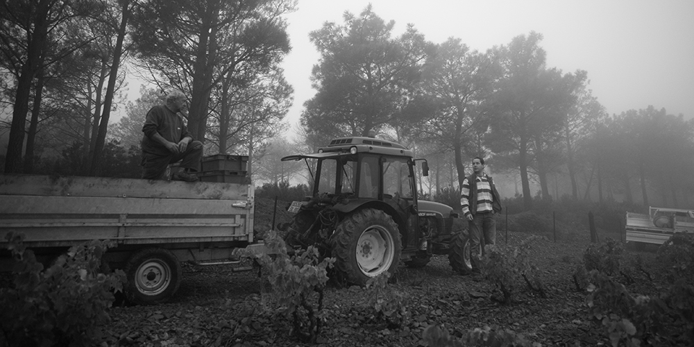 Les vignes du Domaine de la Pertuisane forment une mosaïque de parcelles autour du village, chacune avec son caractère et son exposition. Pas d’irrigation, pas de fils de palissage – seulement du Grenache conduit en gobelet, ces ceps bas et isolés, parfaitement adaptés à la chaleur et au vent.